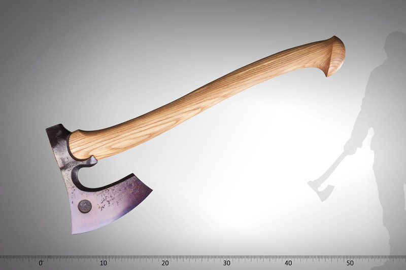 Универсальный хозяйственный топор занимает промежуточное положение между плотницким и инструментом лесоруба. Он отличается широким лезвием с прямой кромкой, заточкой 25–30 градусов и длинным, до 70 см топорищем.