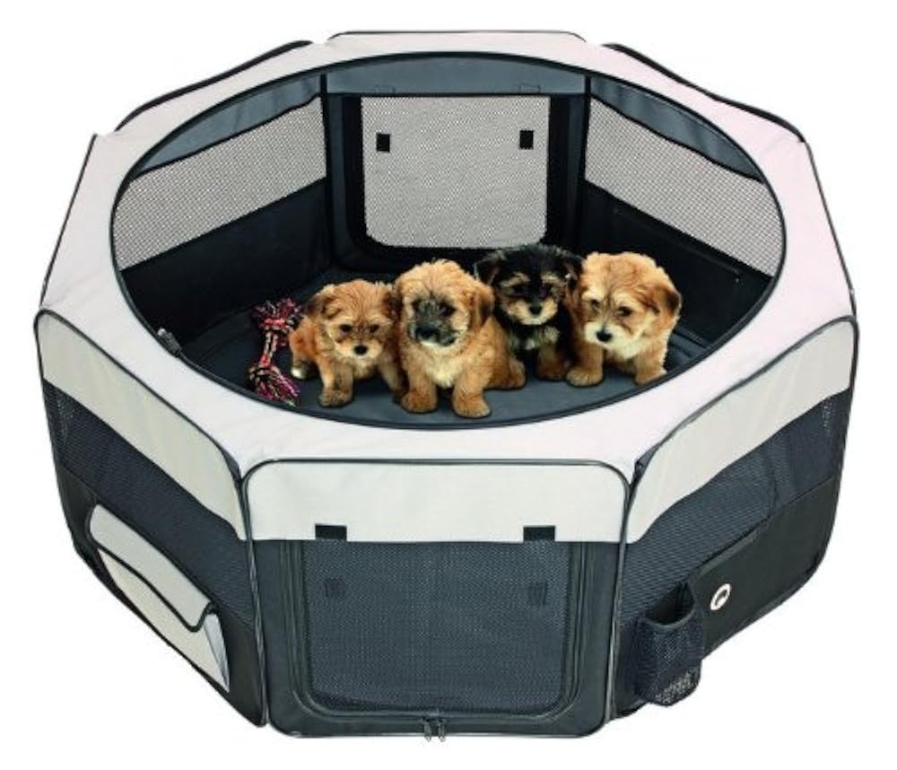 Для таких поездок очень пригодится вольер-тент небольшого размера, который простой и компактный. Если его постоянно не использовать как домашний вольер, он не займет много места при хранении.