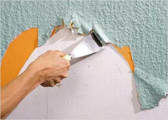 - Если выравнивать штукатуркой (см. Выравнивание стен штукатуркой по всем правилам), шпаклевать, облицовывать керамической плиткой, красить или оклеивать обоями , то счищать покрытие нужно непременно, потому что строительные смеси и клеи к нему не «прилипнут» либо сцепление получится очень ненадежным.Результатом может стать отслаивание нового покрытия.