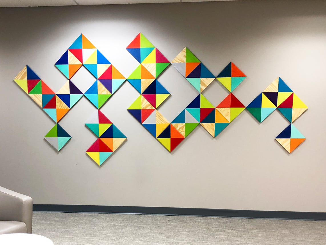 Яркие цвета отлично подойдут для этой затеи. Немного смягчите линии и углы в общей картине и соедините треугольники с помощью натуральных цветов.