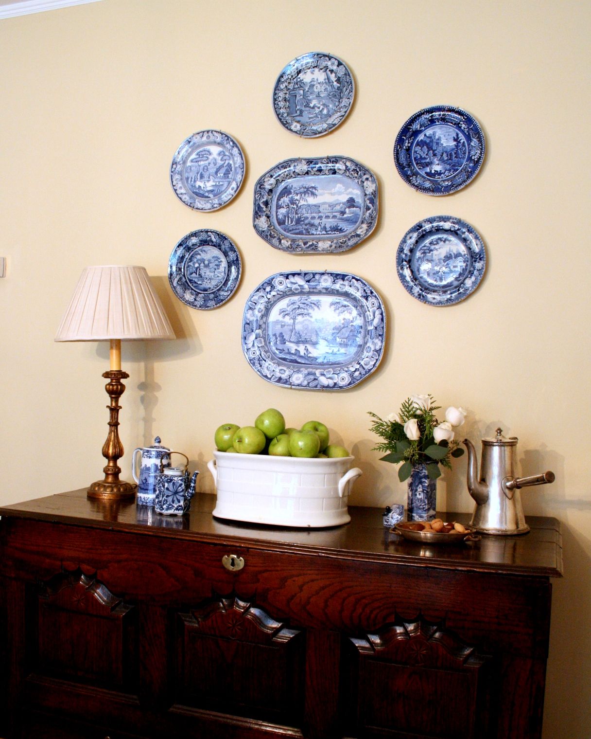 Продолжая собирать антиквариат, я люблю выставлять его напоказ, чтобы рассказать историю. Эта сине-белая стена галереи тарелок идеально подходит для обеденного пространства на кухне. | Бекки Гриффин