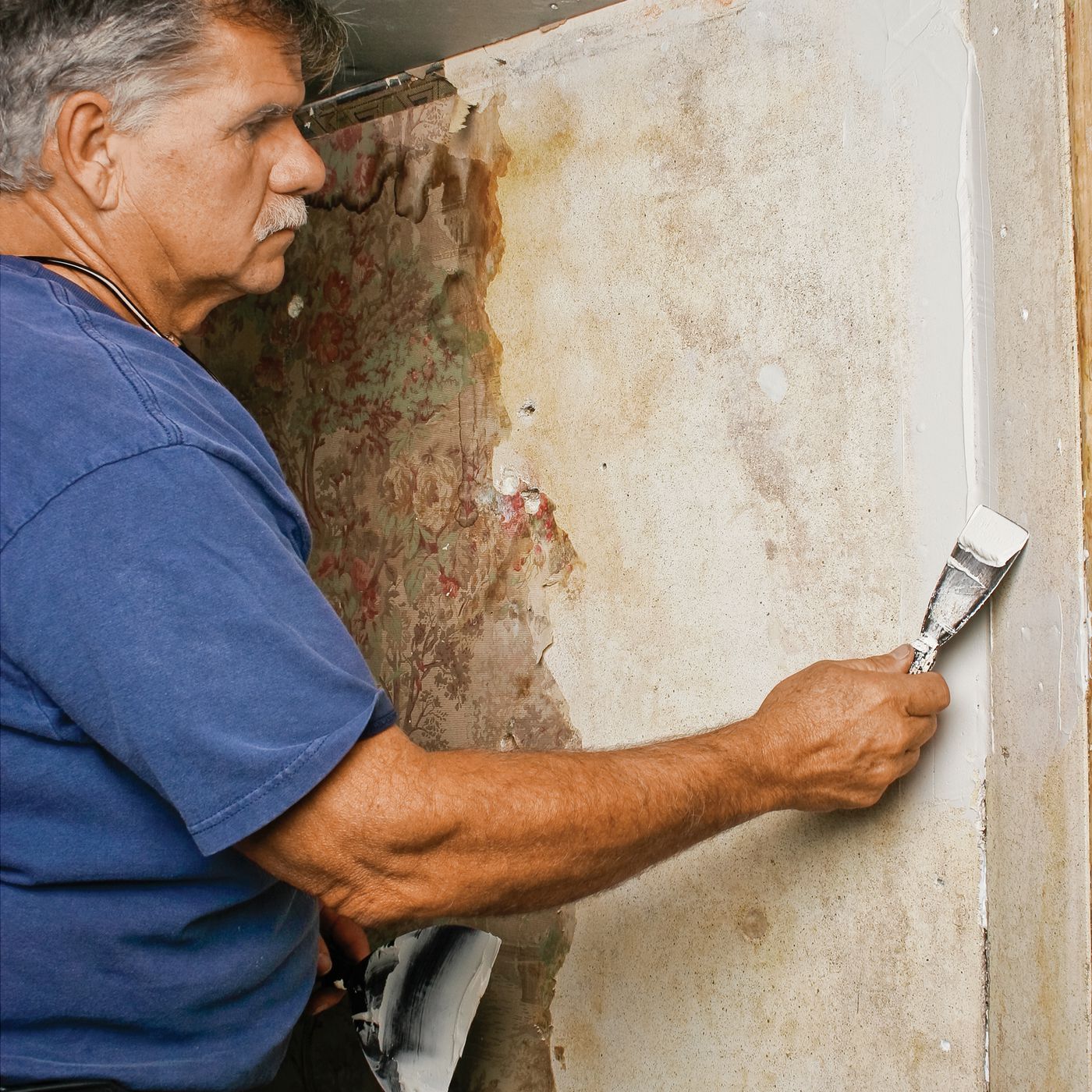 Сейчас опишем каждый этап. Ремонт стен начинается с очистки от различных остаточных материалов, будь то старые штукатурка или обои, облупившаяся краска и другое.