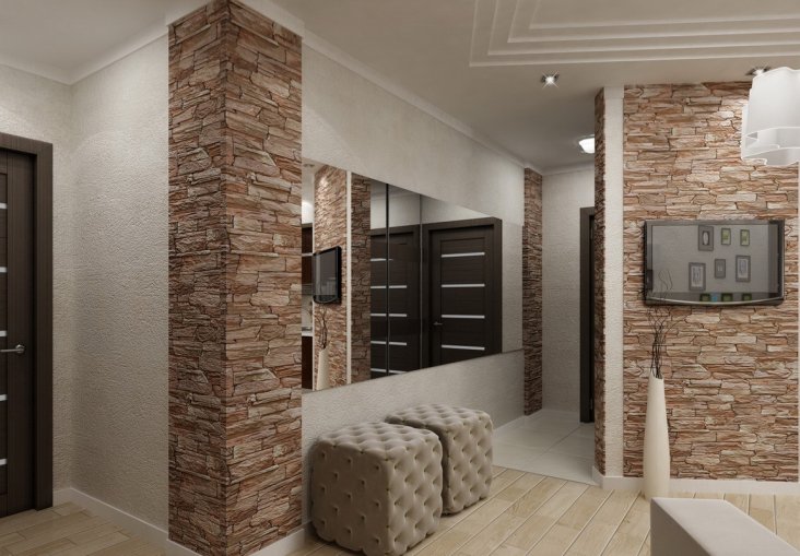 Лучшие примеры oтделки стен декоративным камнем и обоями в прихожей и на кухне