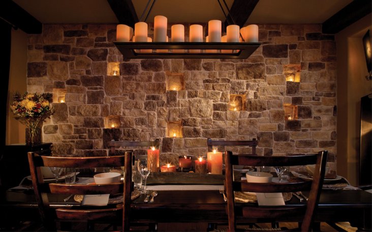- выгодное сочетание с освещением — акцентируйте каменную текстуру расположенными в правильном месте светильниками и вы увидите, как сильно изменится атмосфера в помещении;