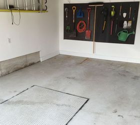 - Продолжайте травить пол небольшими участками. Как только вы закончите весь гараж, промойте пол садовым шлангом, начиная с первого угла и двигаясь вперед.
